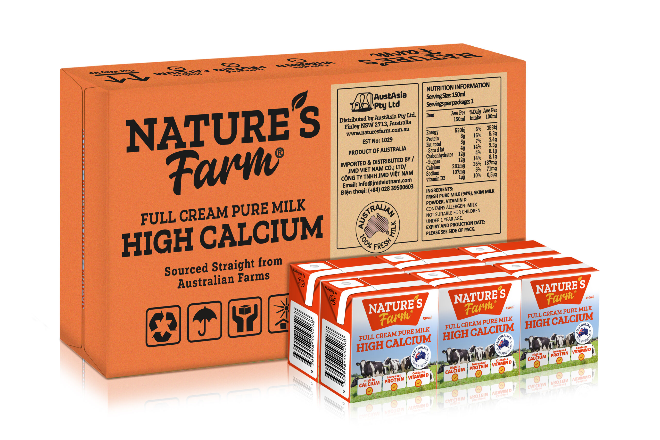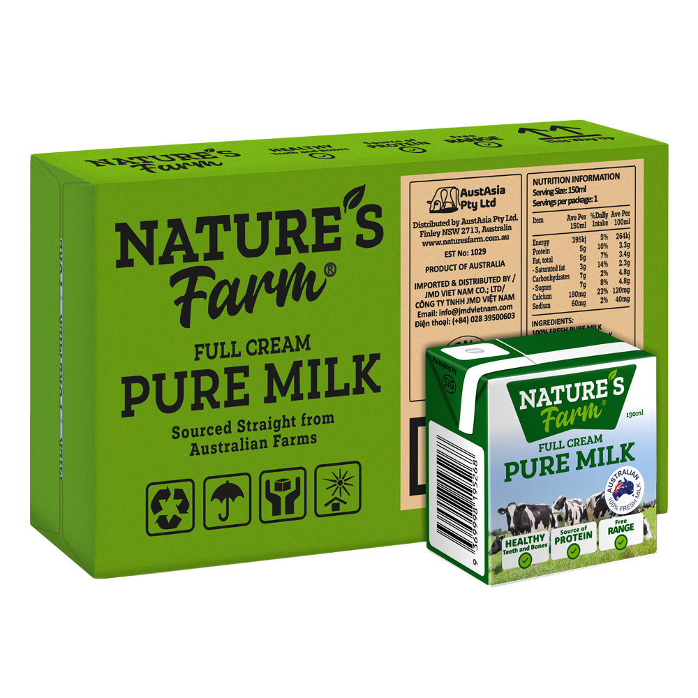 Sữa tươi nguyên kem Nature's Farm Canxi 150ml nhập khẩu Úc, giàu Canxi và Vitamin D .